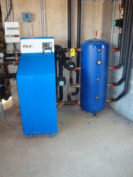 Installation de chauffage et rafraîchissement par PAC (pompe à chaleur) aquathermique haute température (captage sur nappe de la Durance). Mas rénové 400m2. Chauffage, rafraichissement , piscine et eau chaude sanitaire.